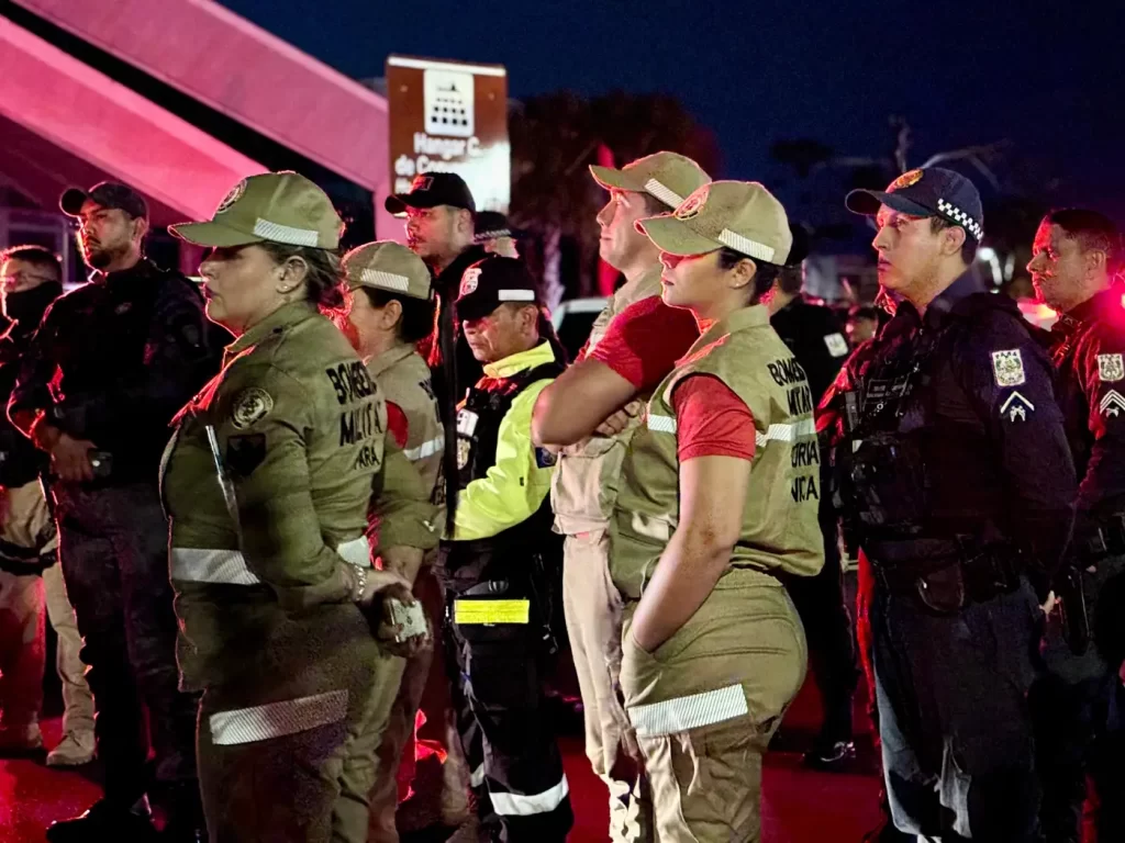 Ações integradas – Com foco principal em crimes violentos letais intencionais – CVLIs, além de feminicídios, furtos, roubos, poluição sonora, perturbação do sossego, dentre outras condutas ilícitas, as forças de segurança destacaram a fiscalização de bares, restaurantes, veículos com sons automotivos, motocicletas adulteradas, festas sem autorização e, a partir daí, atuar preventiva ou repressivamente quando necessário.